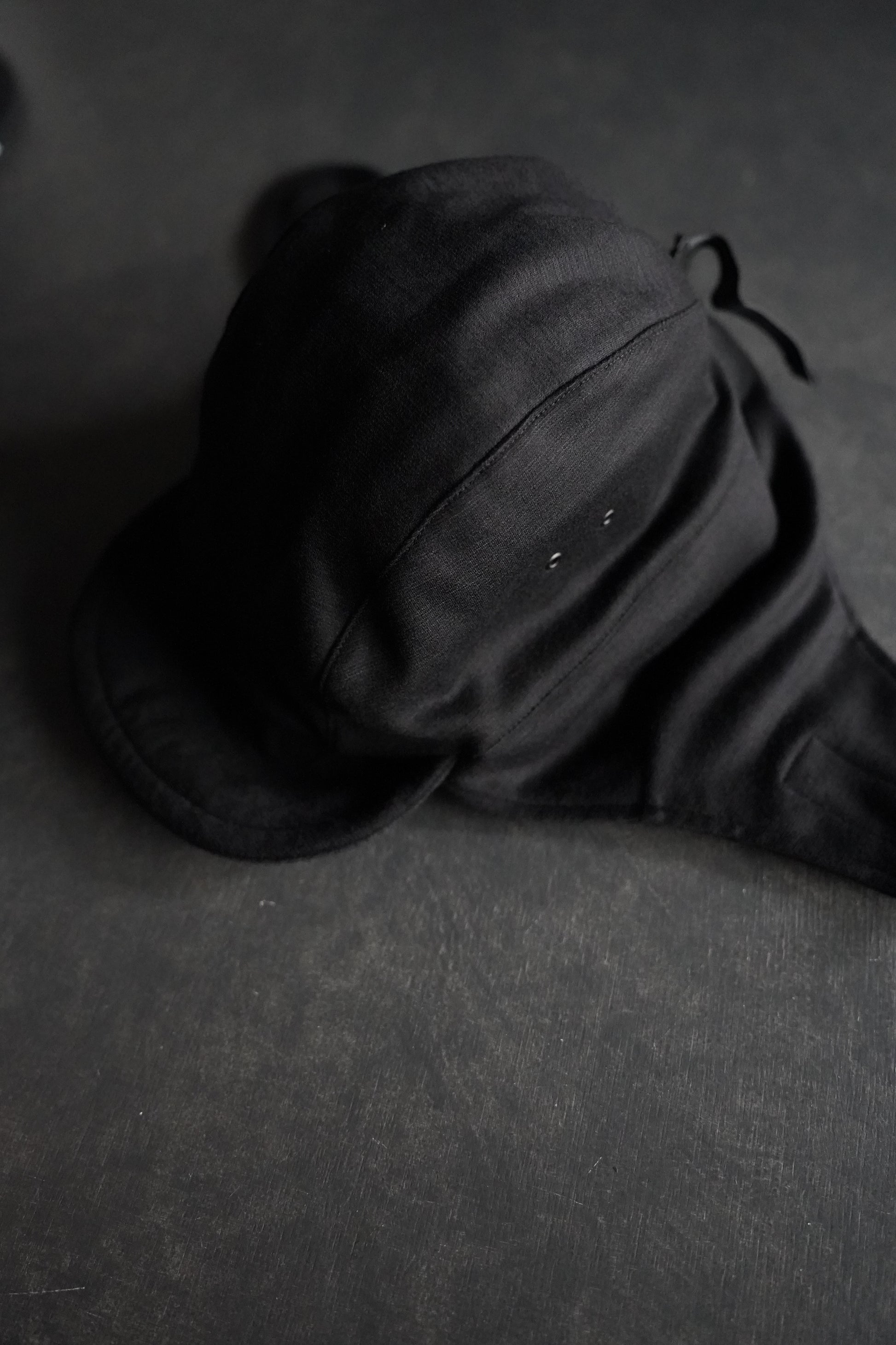 ハンドウォッシャブル可能なウール100%ポンチ生地を使用した2枚耳のアーミーキャップ。 つばの長さは約6.3cm。つば先にはワイヤーが入っており、角度を自由に変える事が出来ます。 マジックテープは新開発のソフトタッチなものを使用。後ろアジャスターでホールド感を増すことも出来ます。 耳を垂らしたままでも、長い方の耳だけ頭の上で止めたり、2枚とも耳をあげたり、様々な被り方が楽しめます。