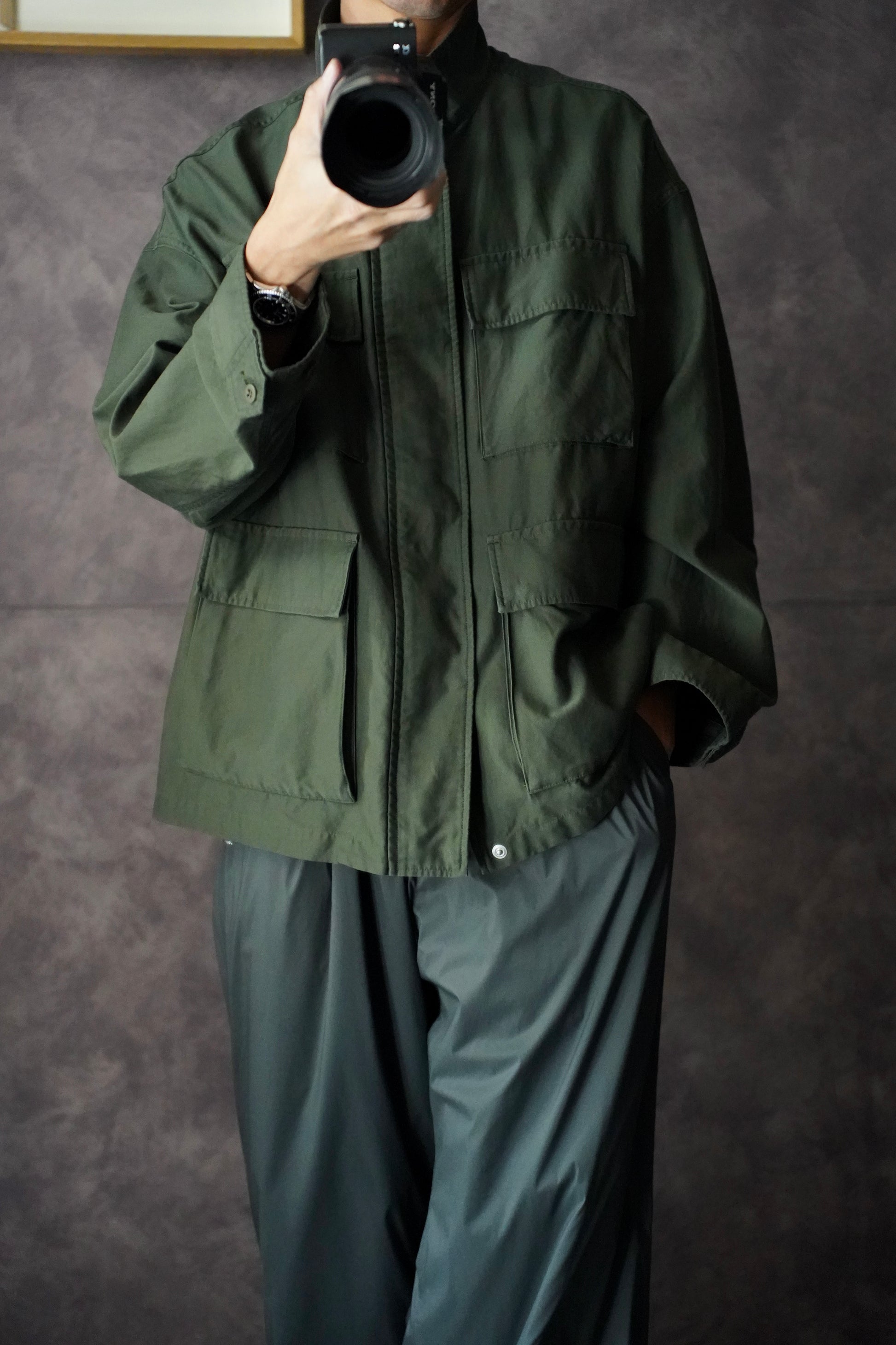 表面には上質なスーピマコットン、裏面にはキュプラフィラメントを使用したバックサテン素材。これにより柔らかな光沢感と滑らかな着心地が生まれる素材。製品洗い加工を施し、パッカリングや自然な風合いが加わったミリタリージャケット。付属は目立たせず、ミリタリーテイストを保ちながらもクリーンで洗練された印象に仕上た。*後加工により、1点1点微妙に表情が異なりますので、その個性をお楽しみください。