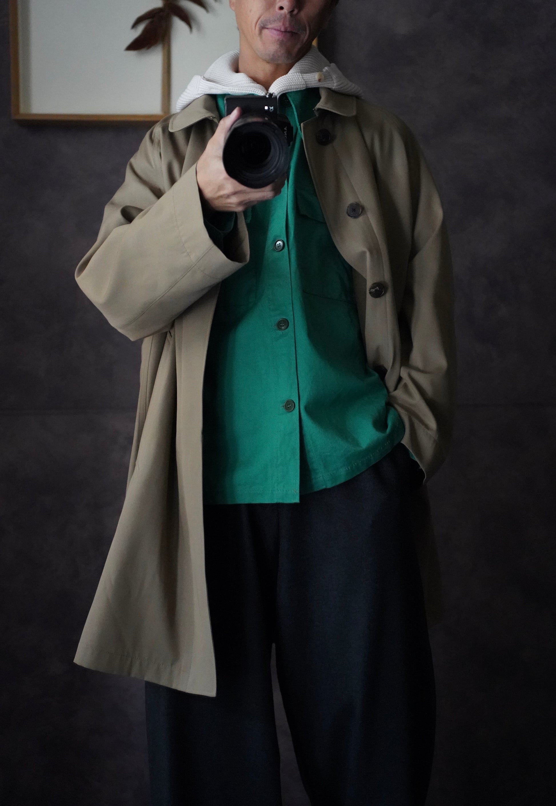 鮮やかなグリーンカラーのコットンでスラックスなどの相性良し。