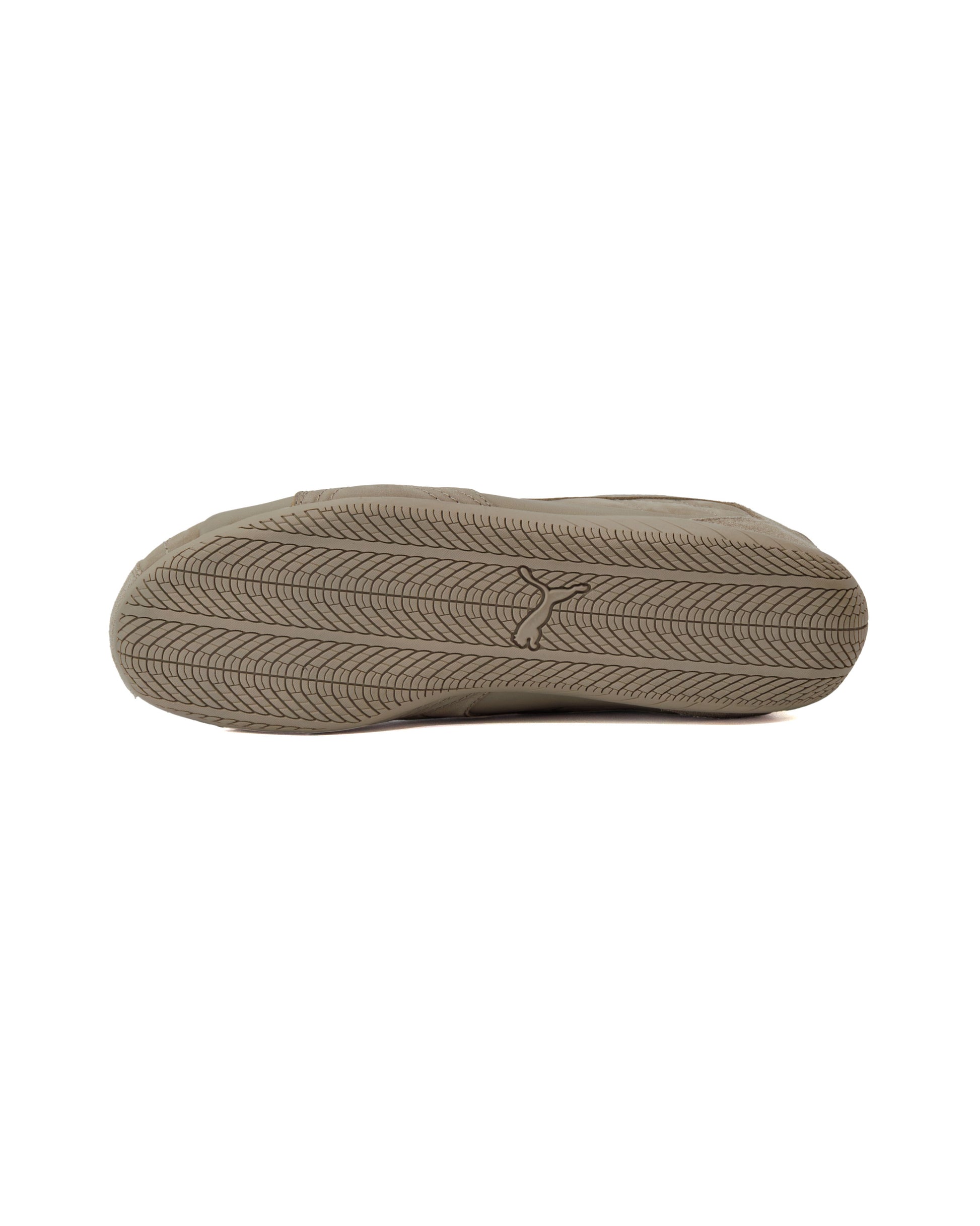 PUMAとのコラボレーションスニーカー。スピードキャットは、1999年に誕生し、80年代から 90年代にかけて F1Oランプリのドライバーが履いていた耐火レ ーシングシューズをベースにしたライフスタイルシューズ。レーシングにインスパイアされたなめらかなライン と空気力学に基づいたデザインにより、ファッションやスニーカーカルチャーに衝撃を与えてきた。アイレットを隠したミニマルなSPEEDCAT PLUSをベースに25AWのテーマを表現する様、アッパーにはスムース、ショートスエード、ヌバックの3つの革を使用し、ソール、刺繍すべてを同色で組み合わせたデザイン。