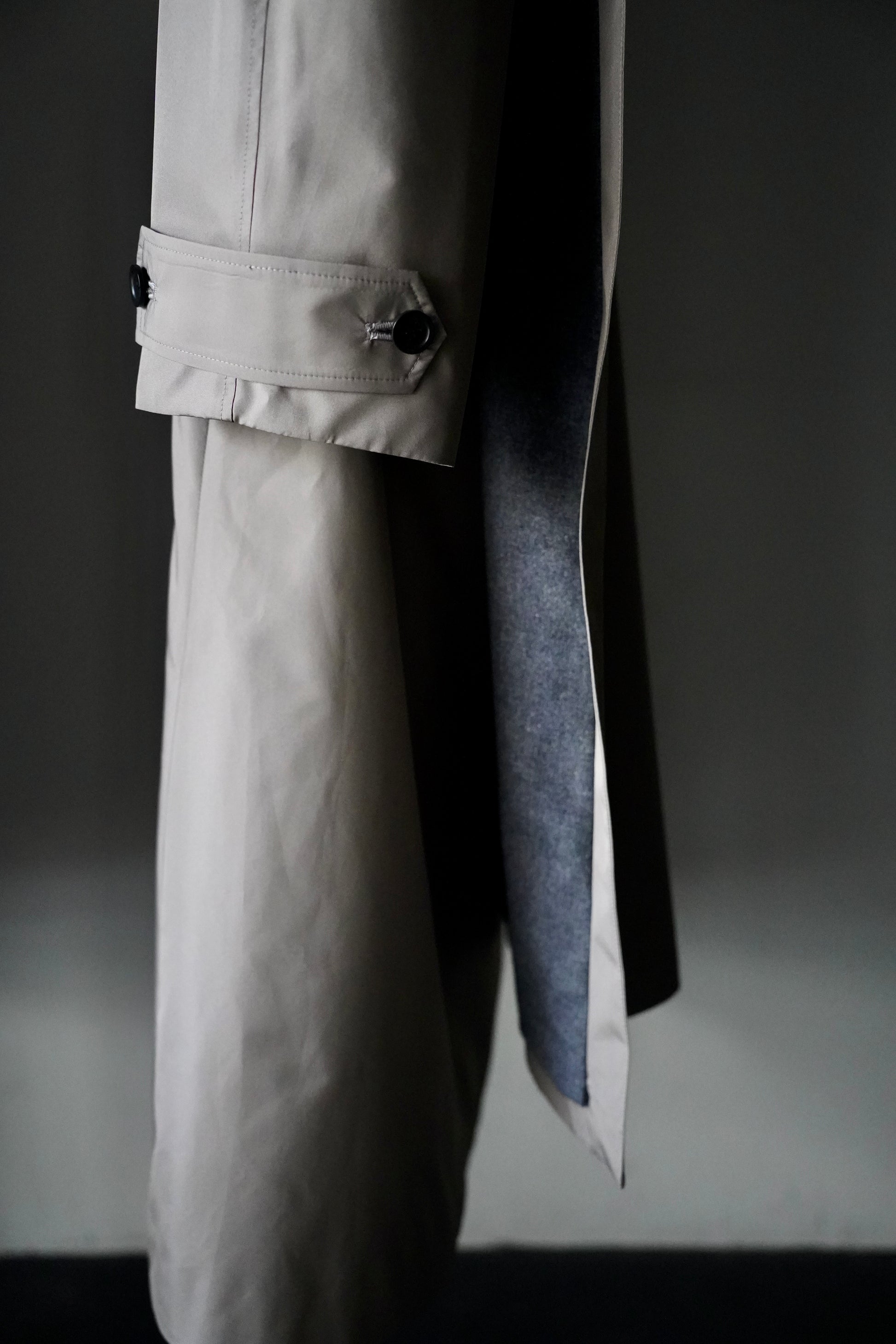 高密度のタフタシーレ素材を使用した今季を象徴するロングコート。