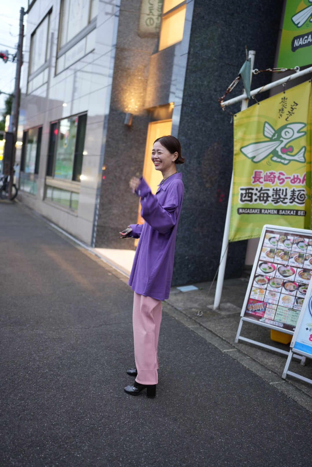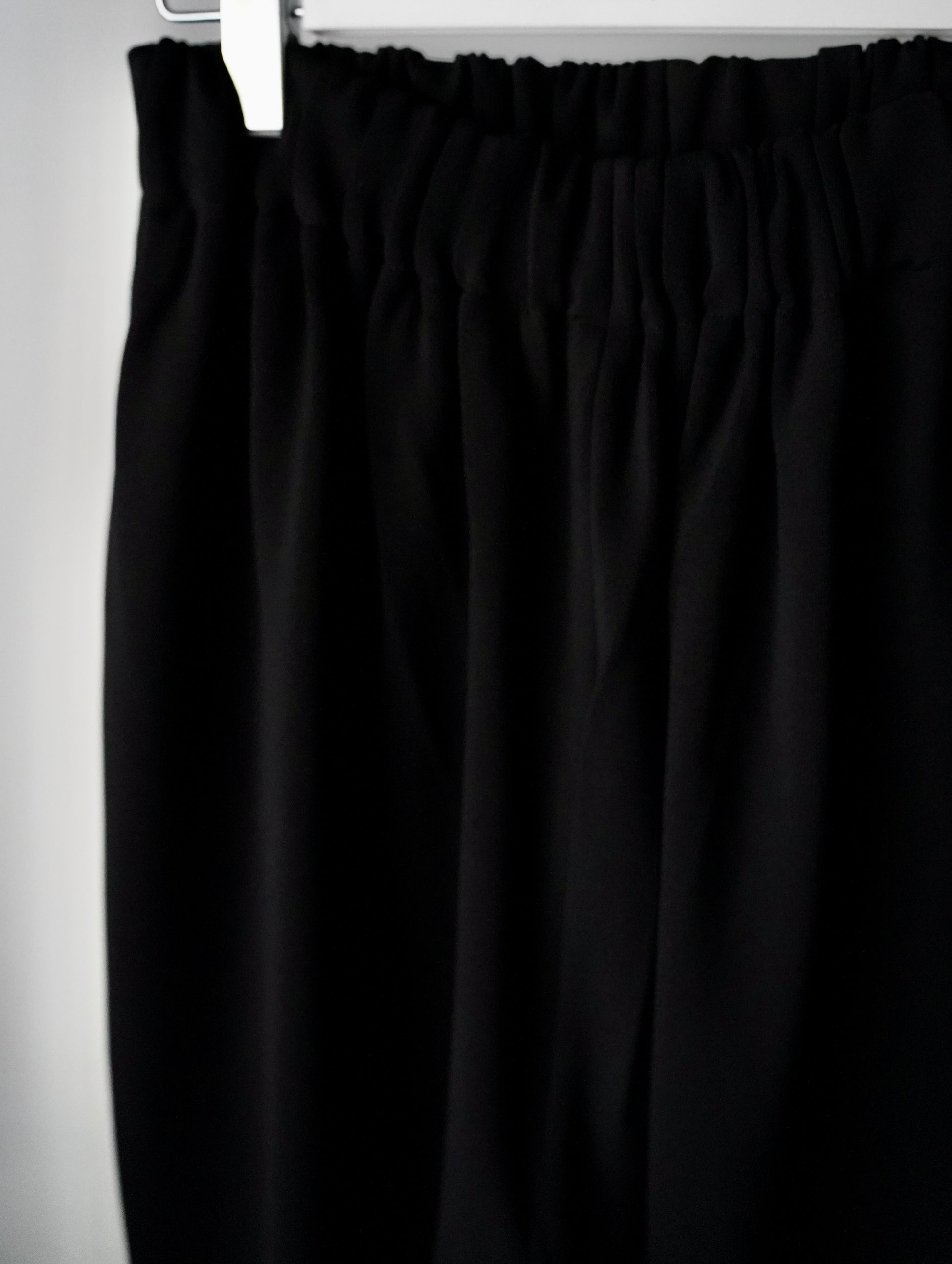 レングスとウエストギャザーのボリュームは何度も修正を重ねて長めに設定したレングスを10cmくらい折り返して履くことに着地。裾にちょっと溜まる感じがいいんです。