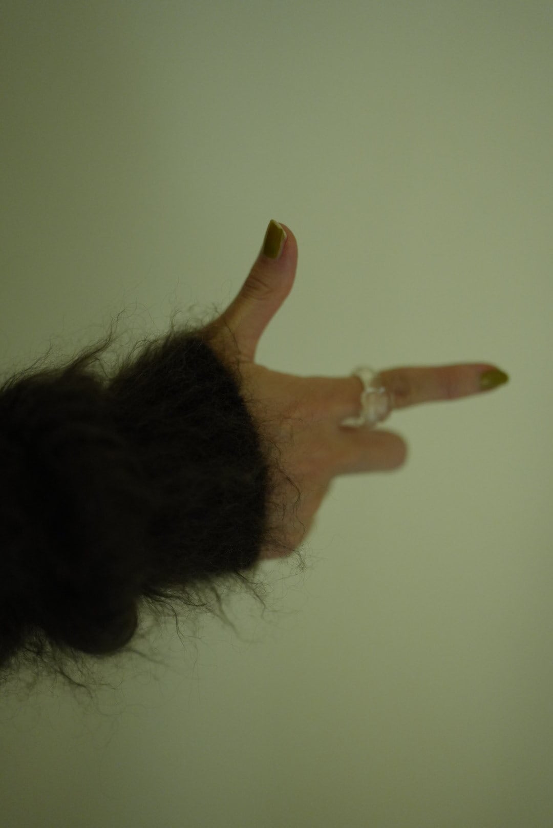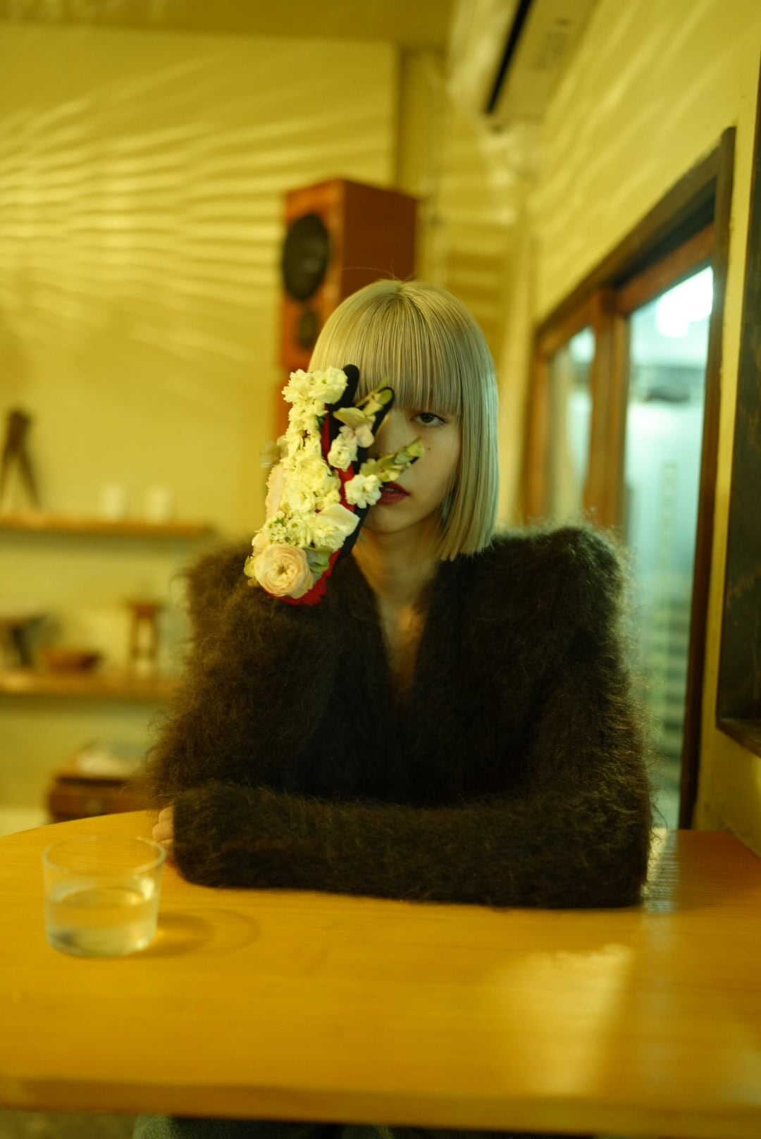 モヘア高混率の糸を片畦で編み(片畦とはニットの編み方の一種で片面をゴム編みもう片面をタックで編むことで立体感と凹凸感のある編み地を作る技法です)