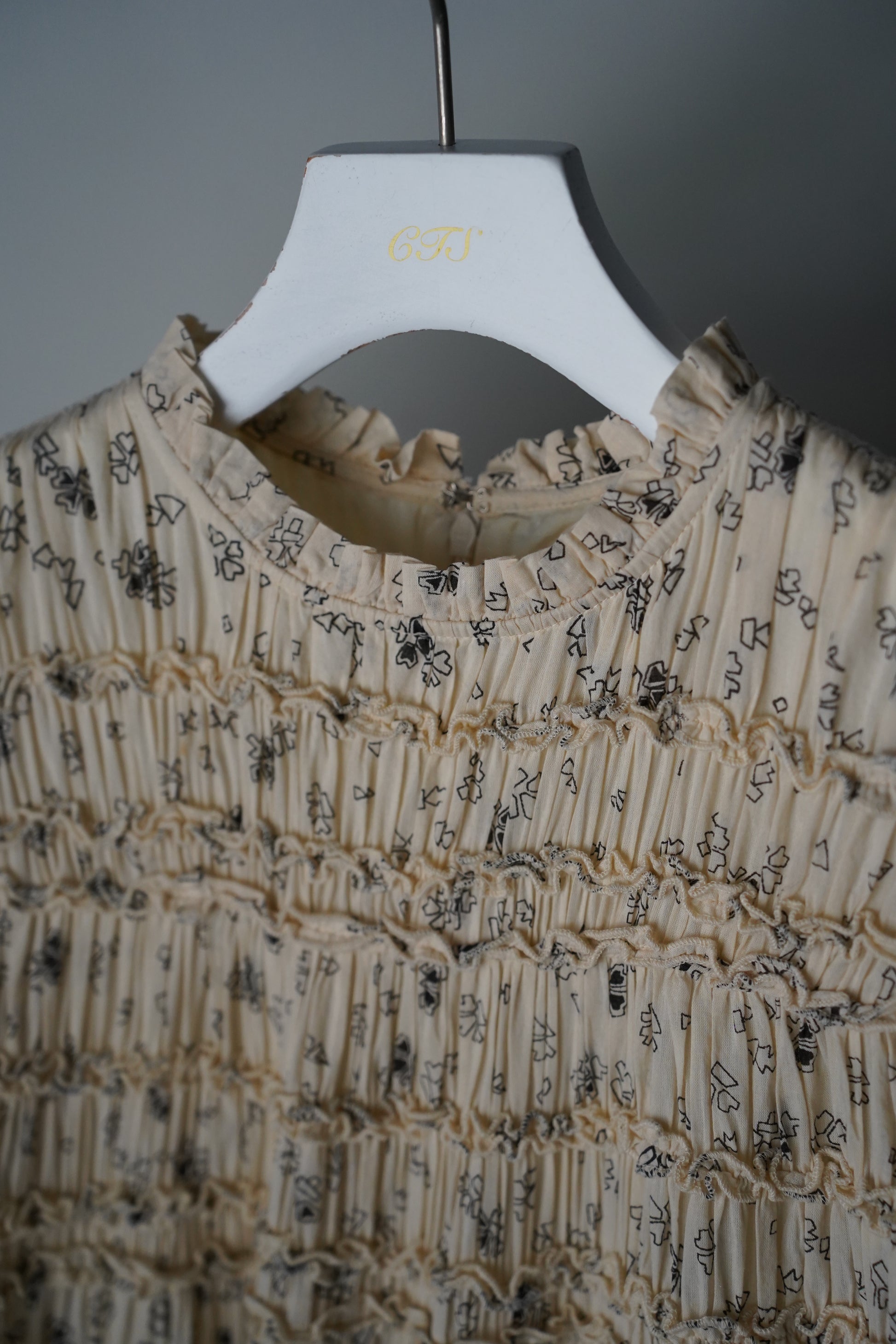 ボイルの薄さを活かしギャザーを寄せ集めた生地に
