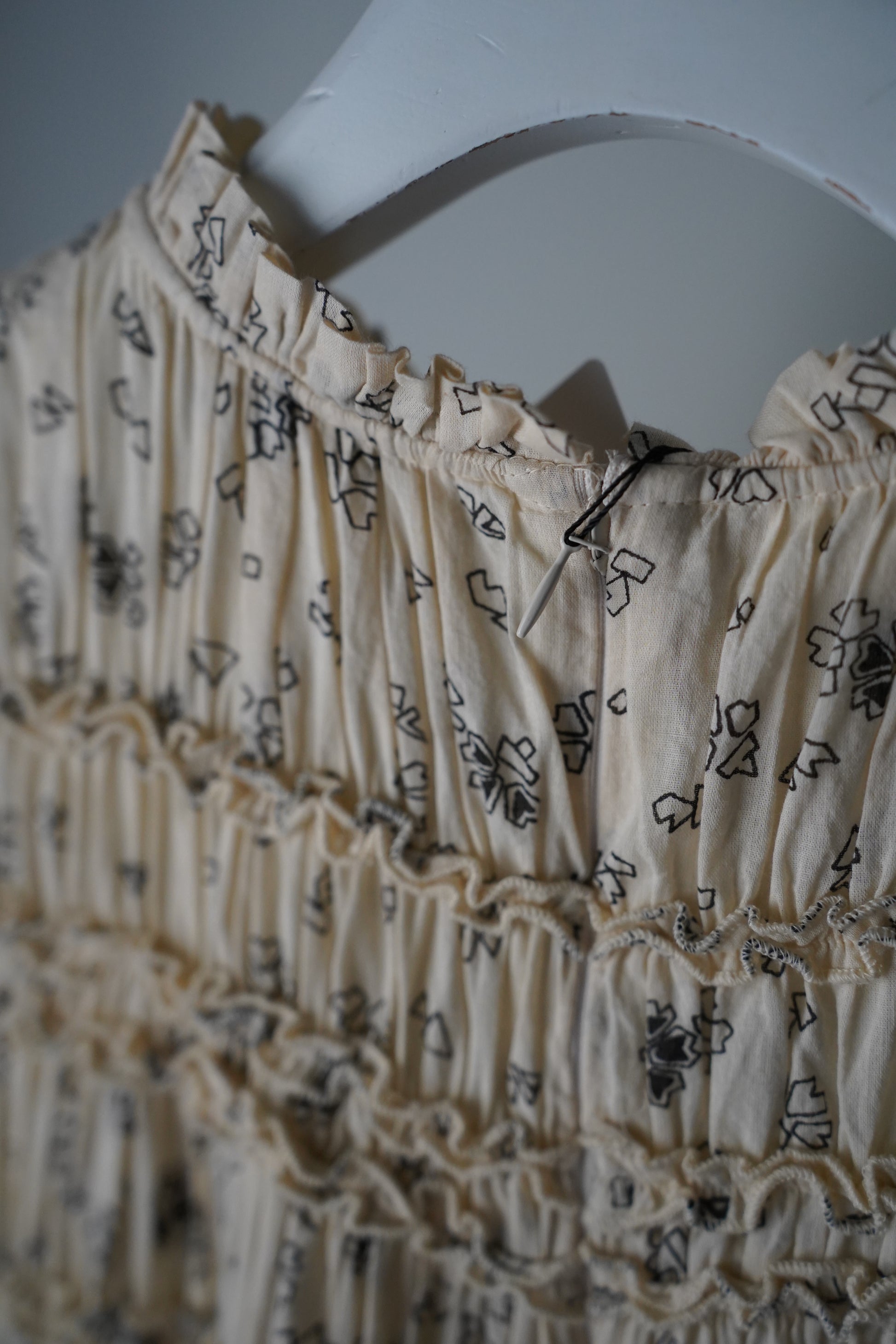 何段にもギャザーとフリルを重ねることで力強い美しさが宿っています