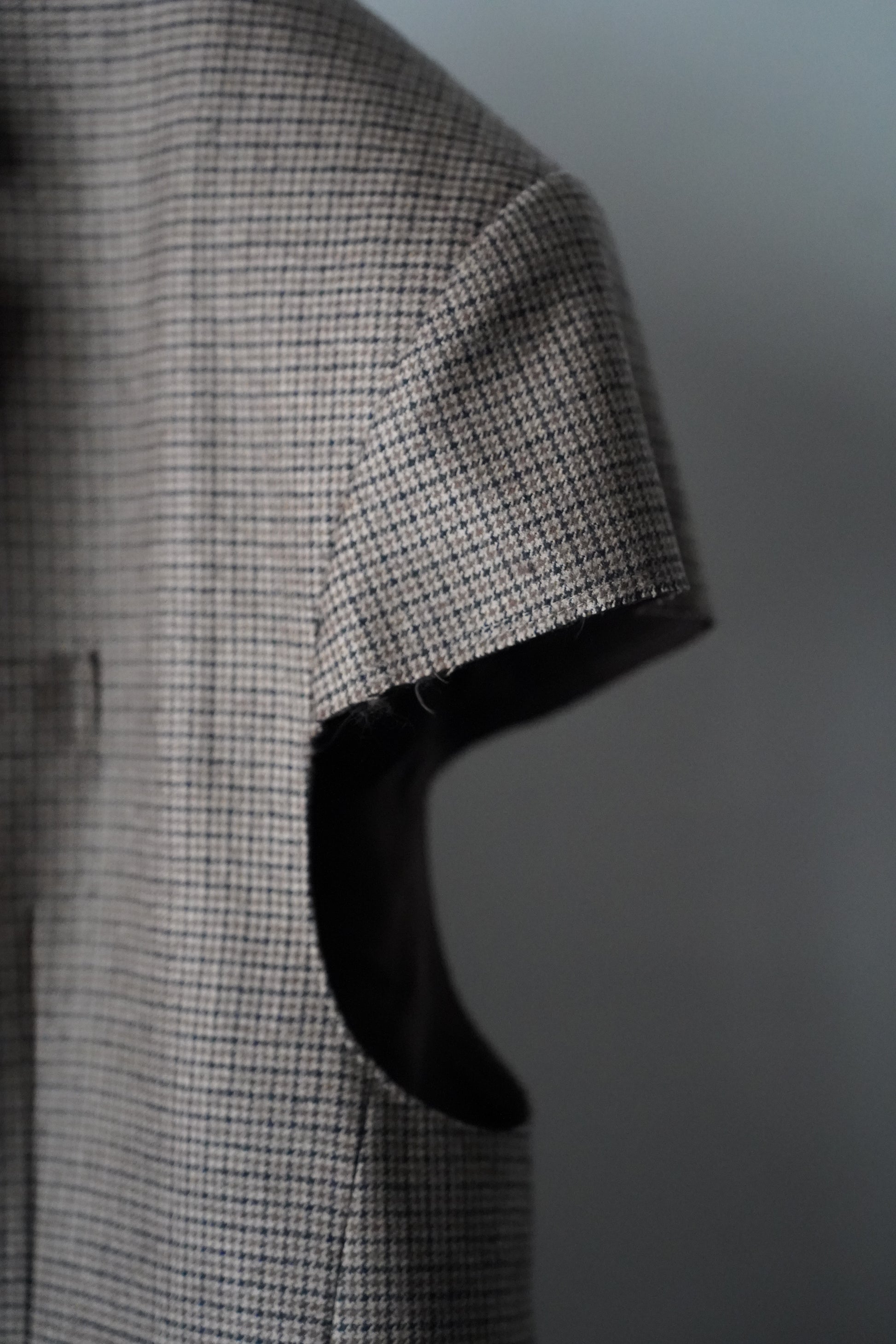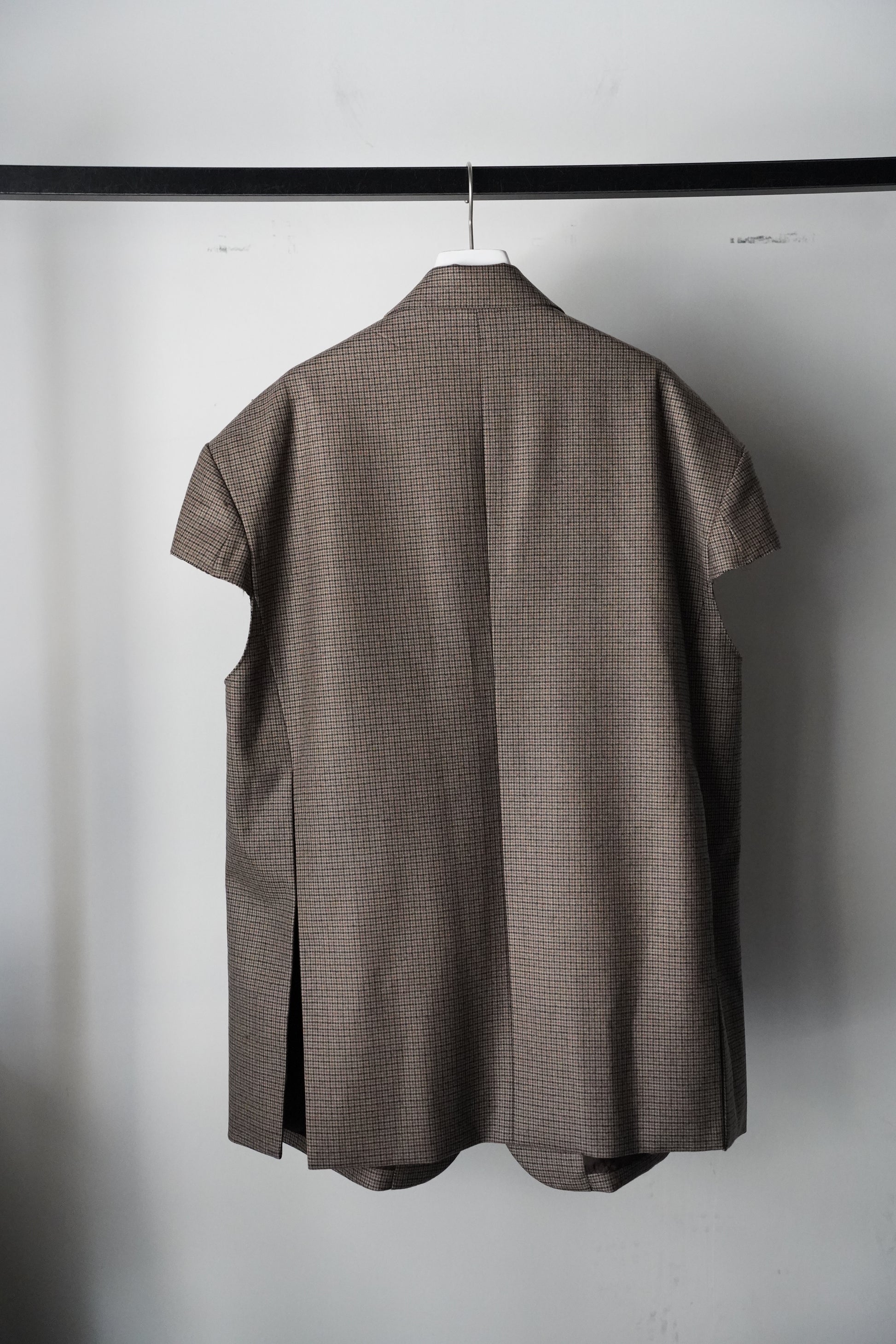 オーバーサイズなウール・チェスターコートの袖を大胆にクロップドしたベスト