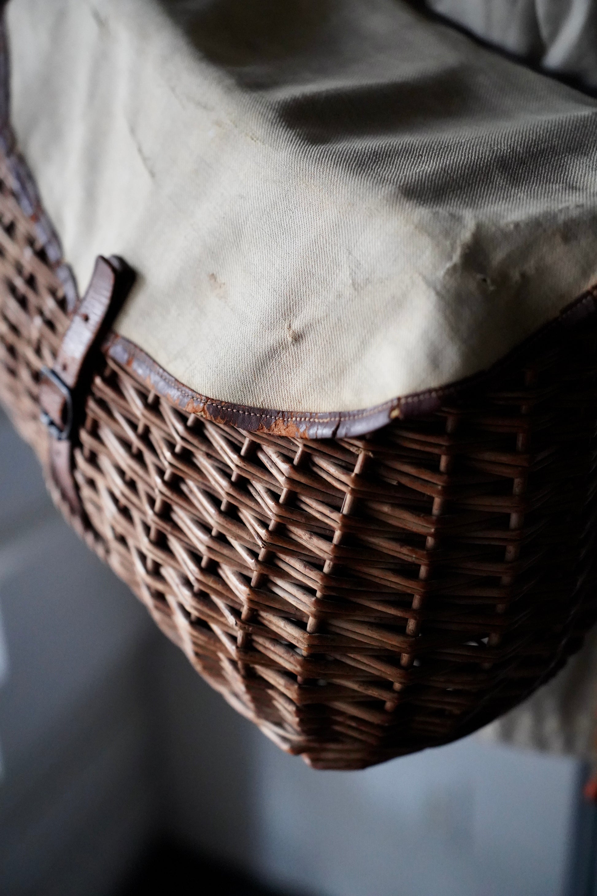本体は珍しいバスケット、革部の丁寧なステッチや味のあるキャンバス。